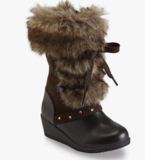 Toddler Girls Brown Fashion Boots with Faux Fur Trim 7T